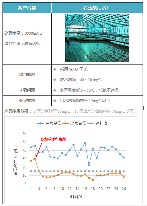 針對性的接種總氮強效菌種—邁葳®總氮激活菌101,改善菌群結構,快速實現總氮降解目的。總氮去除率高達99%。